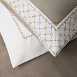 Комплект постельного белья из сатина с контрастной вышивкой. В комплект входят 2 наволочки, пододеяльник и простынь. Состав - 100% Хлопок.