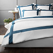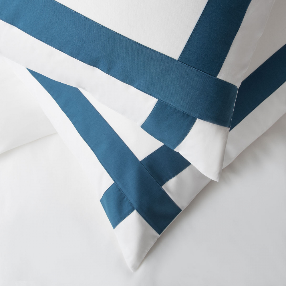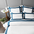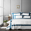 Комплект постельного белья из сатина с отделкой контрастными планками. В комплект входят 2 наволочки, пододеяльник и простынь. Состав - 100% Хлопок.