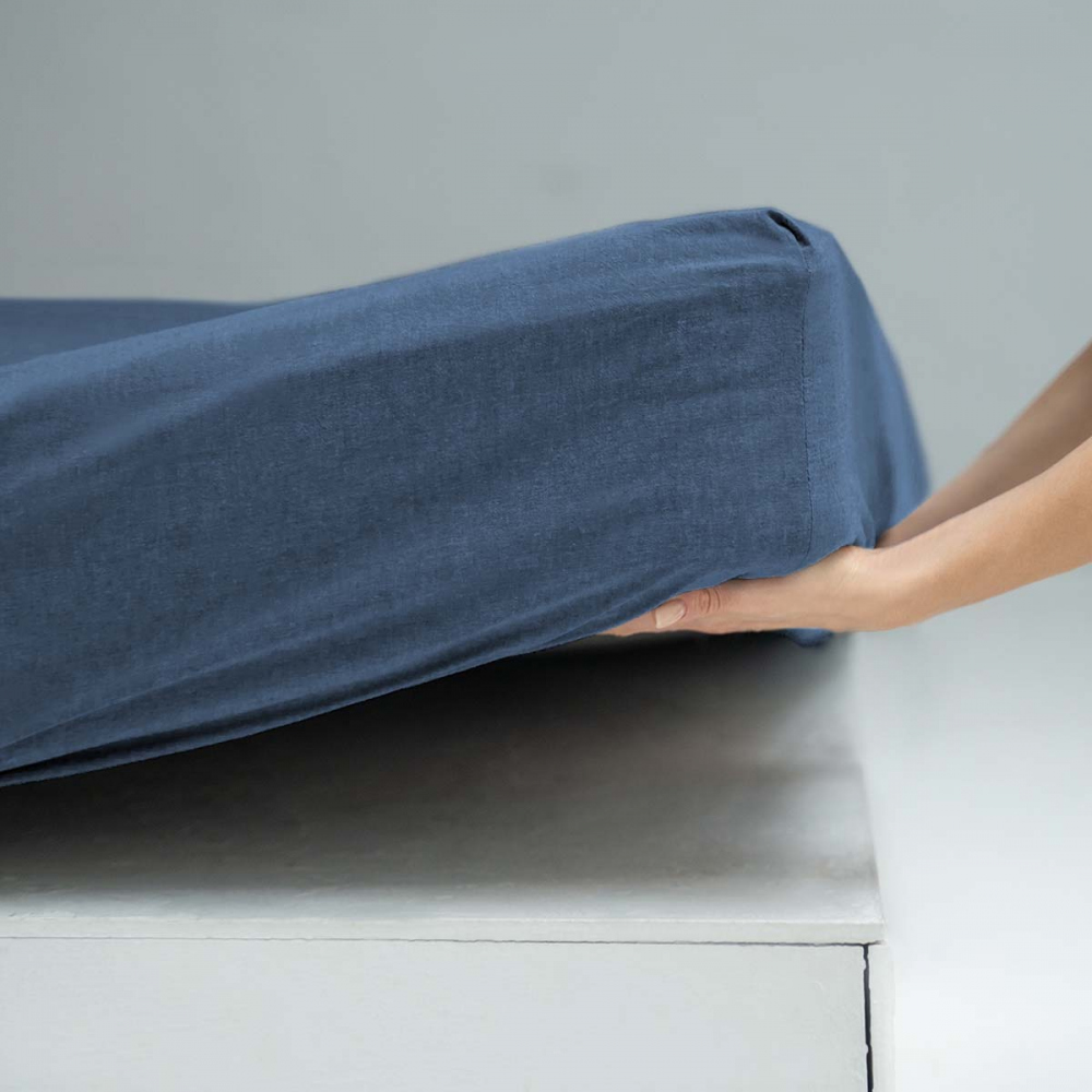 Простыня из натуральной однотонной ткани. Материал ткани - вареный хлопок, состав - 100% хлопок, плотность ткани - 120 г/м2.