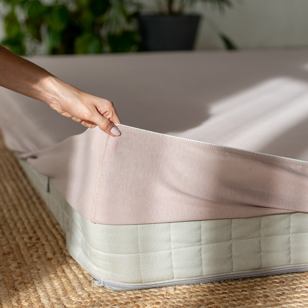 Трикотажная простыня на резинке, выполненная из натурального хлопка. Простыни полностью гипоаллергенны. Ткань приятна на ощупь и обладает дышащим эффектом, благодаря которому вам будет комфортно летом и тепло зимой. Простыни имеют полноценный бортик 20 см и подходят для матрасов высотой до 15 см. На более высоких матрасов простяня будет надежно зафиксирована, но не покроет всю высоту матраса. Для матрасов выше 15 см рекомендуется выбрать простыню на размер больше.