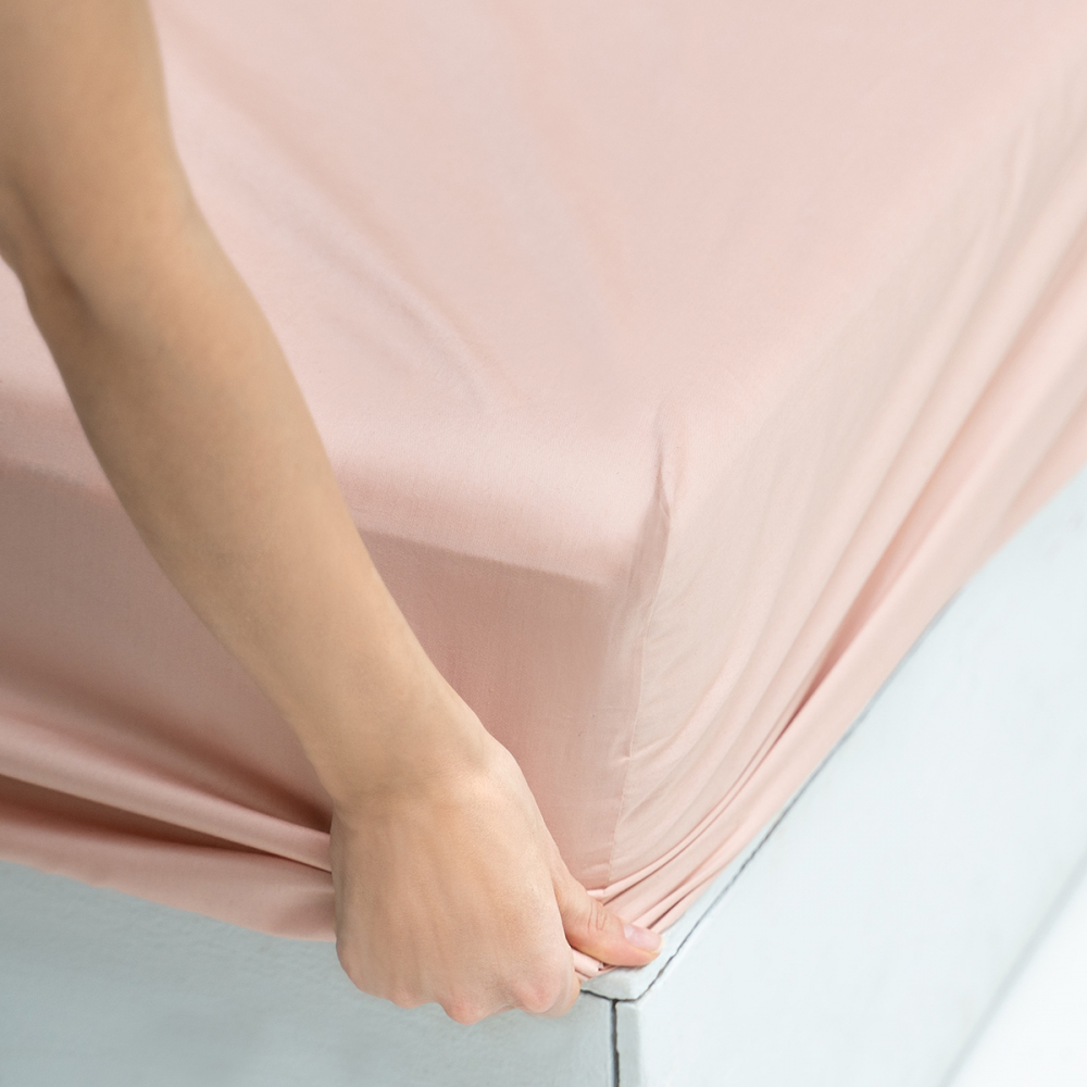 Простыня на резинке из натуральной однотонной ткани. Материал ткани - сатин, состав - 100% хлопок, плотность ткани - 125 г/м2.