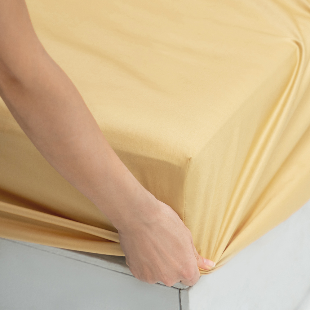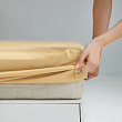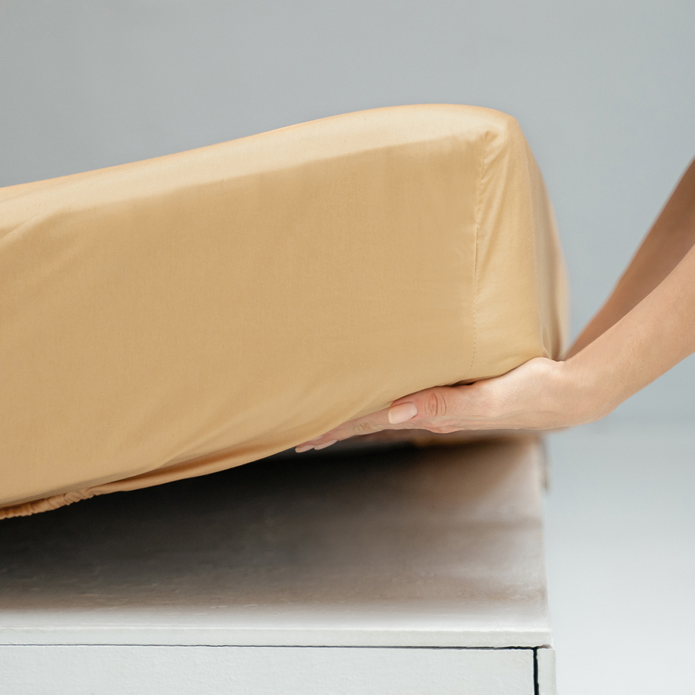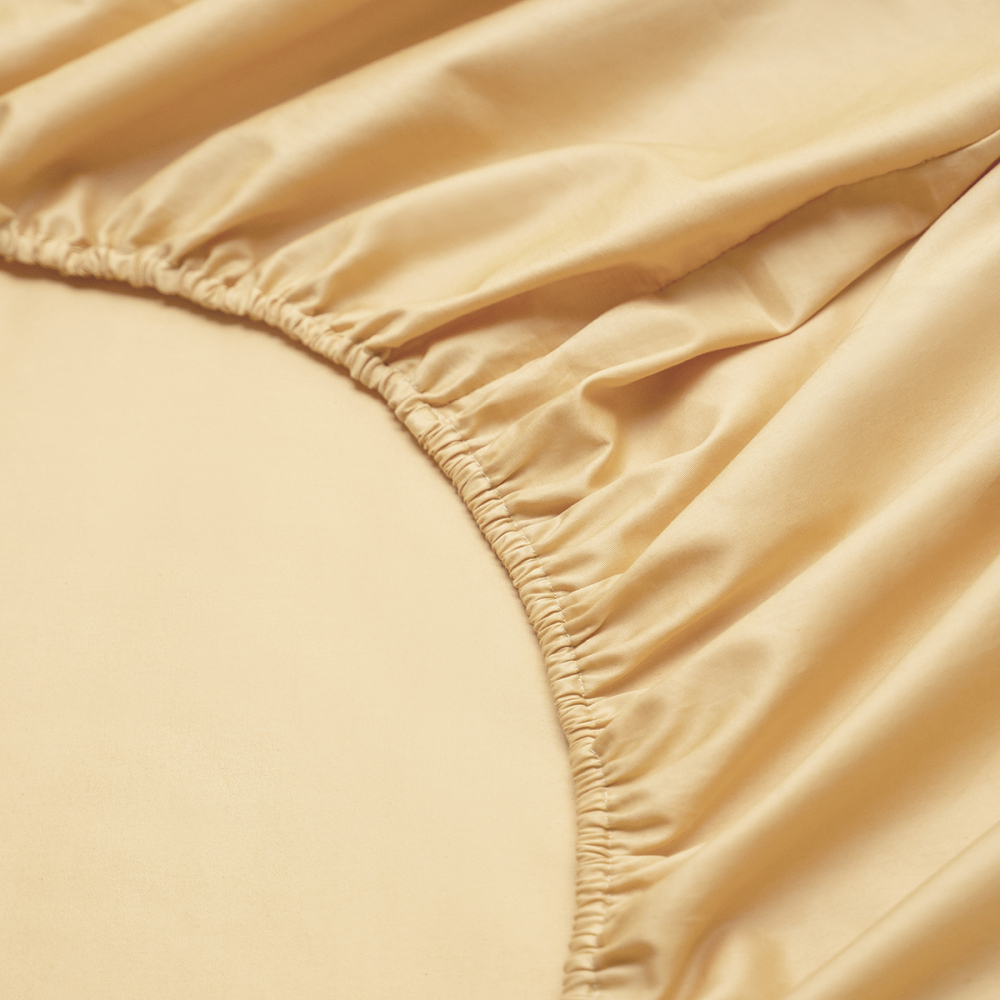 Простыня на резинке из натуральной однотонной ткани. Материал ткани - сатин, состав - 100% хлопок, плотность ткани - 125 г/м2.