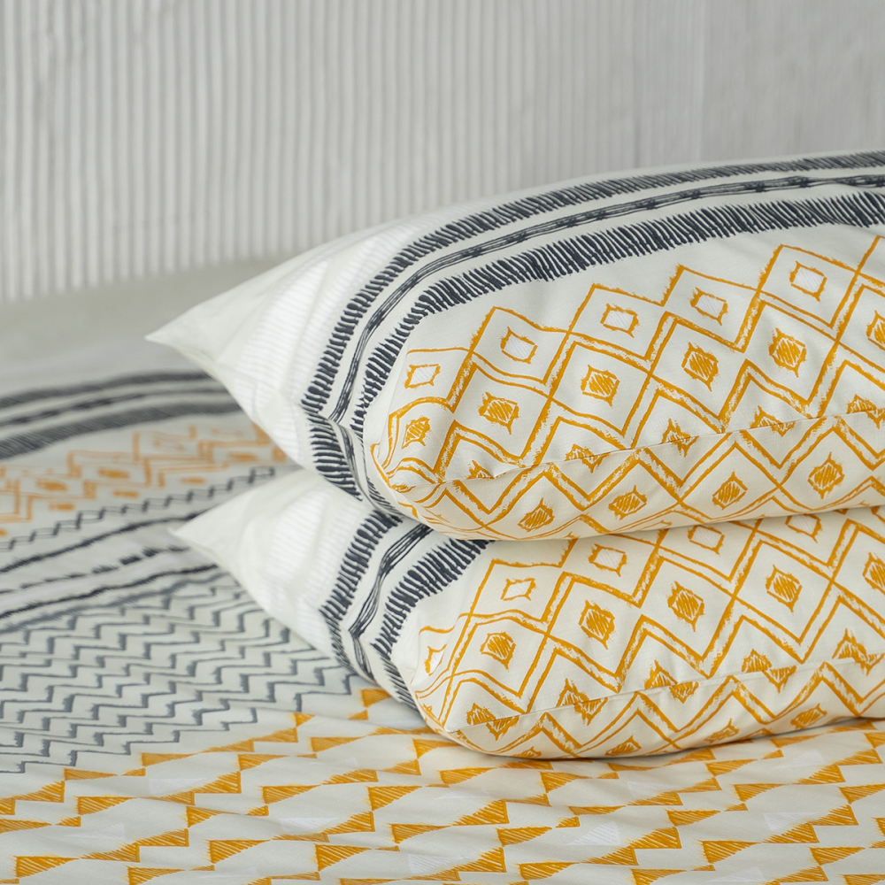 Комплект наволочек из натуральной ткани с графичным принтом. В комплект входят 2 наволочки с клапаном. Материал ткани - ранфорс, состав - 100% хлопок, плотность ткани - 115 г/м2.