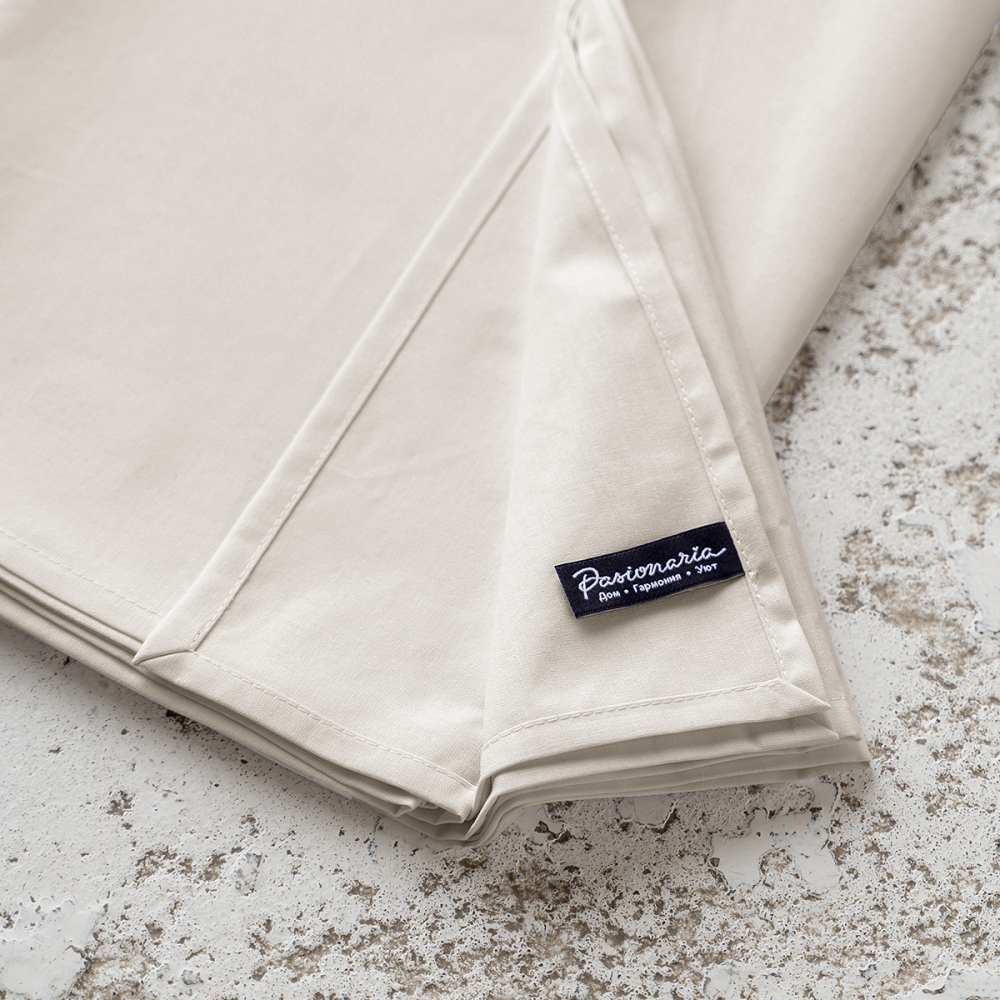 Простыня из натуральной однотонной ткани. Материал ткани - ранфорс, состав - 100% хлопок, плотность ткани - 115 г/м2.